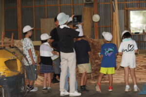 内を見学しました。子供達は、初めて目にする大きな機械や製材